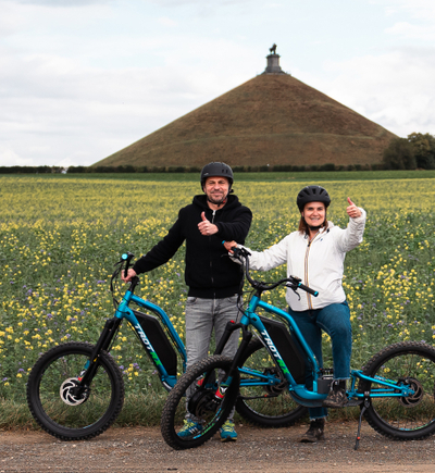 Au guidon d’une trottinette électrique tout-terrain, partez en balade guidée à travers les paysages emblématiques de la région de Waterloo et Lasne : forêts, chemins de campagne, champs historiques et points de vue uniques.